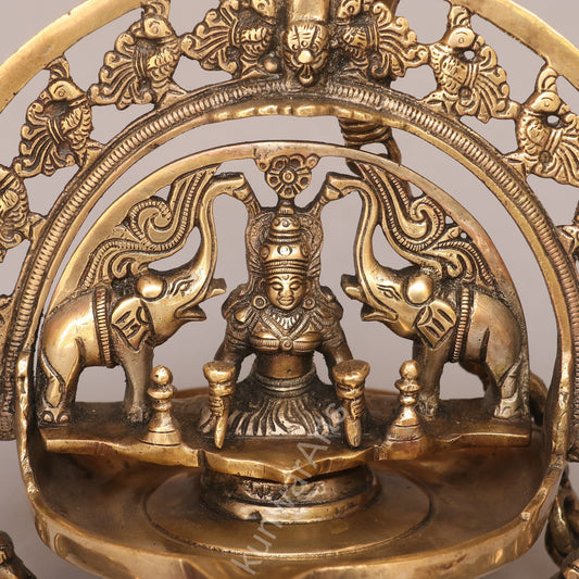Brass Gaja Lakshmi Oil Lamp Décor Figurine