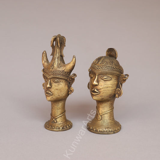 Handcrafted Brass Tribal Head Figurines – Pair of Ethnic Sculptures
