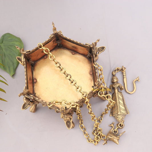 Vintage Hanging Décor Hexagonal Brass Planter With Oil Lamps
