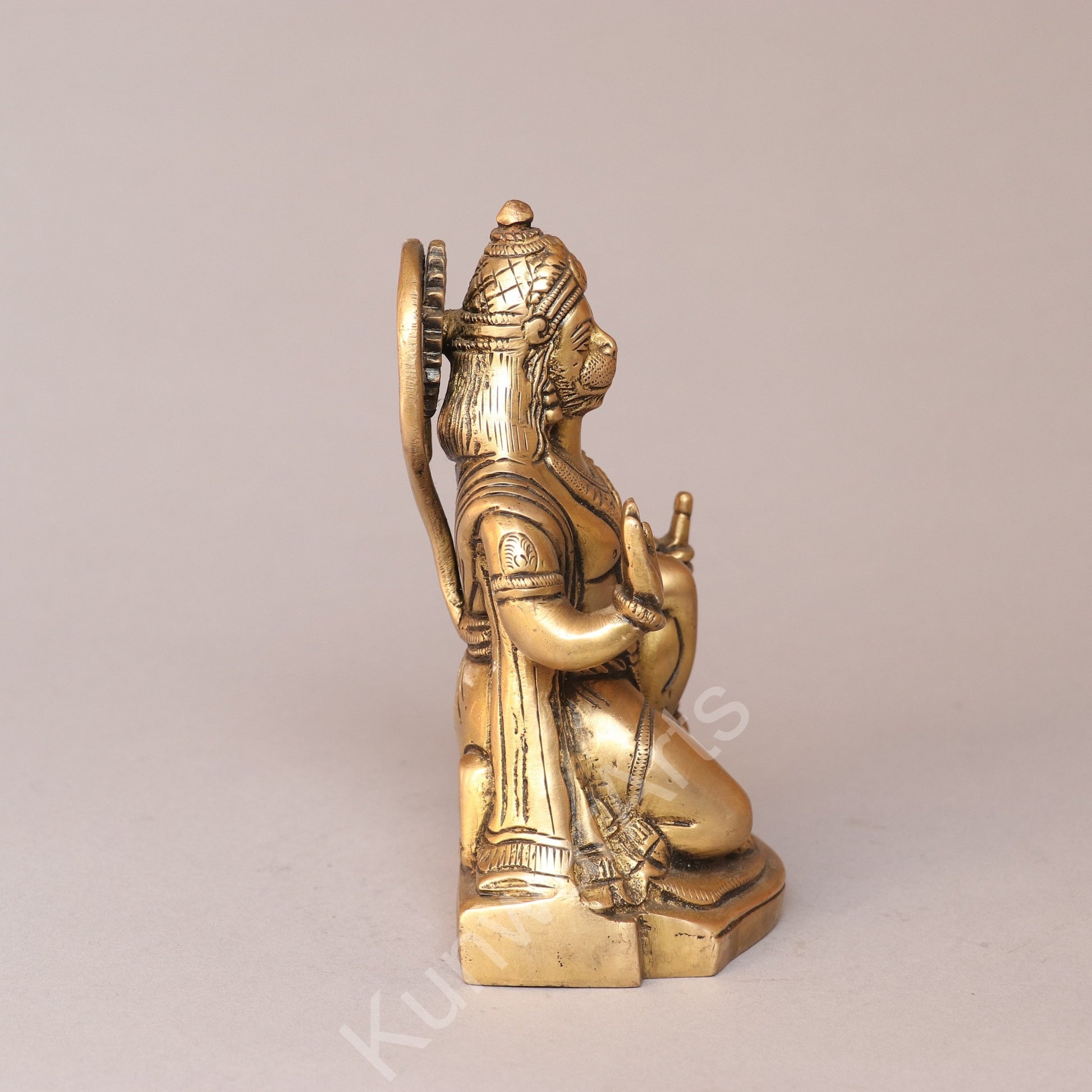 This particular brass Hanuman idol is a beautiful example of traditional artistry. Standing tall and dignified, the figure of Lord Hanuman is rendered with a quiet, powerful grace.